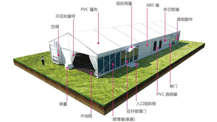 產品優(yōu)勢.外觀簡潔大方. 內無支柱,百分百利用空間.可選配套設施,可加照明、排水、防撞、地臺、空調、發(fā)光燈箱、墻體、門等系統(tǒng).鋁合金輕便,安裝拆卸方便快捷.廣泛應用于展會、售樓處、倉儲、景區(qū)、酒店、夜市等。